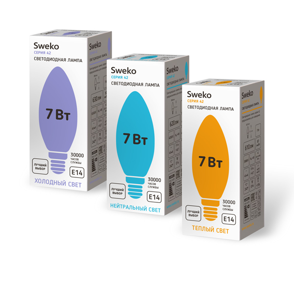 | Модель | 42LED-C35-7W-230-3000K-E14-P | 42LED-C35-7W-230-4000K-E14-P | 42LED-C35-7W-230-6500K-E14-P |