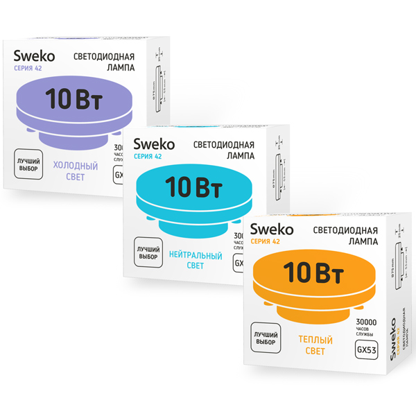 | Модель | 42LED-GX53-10W-230-3000K-GX53-P | 42LED-GX53-10W-230-4000K-GX53-P | 42LED-GX53-10W-230-6500K-GX53-P |