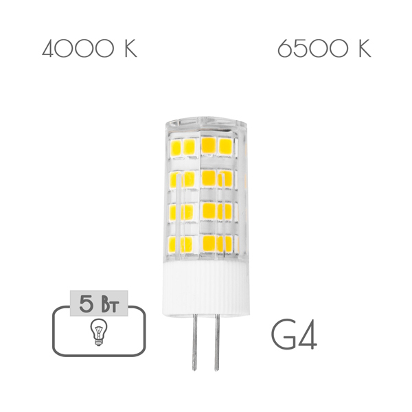 | Модель | 42LED-JCD-5W-230-4000K-G4-PLCORN | 42LED-JCD-5W-230-6500K-G4-PLCORN |