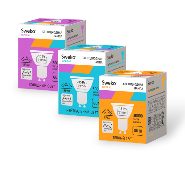 Цветовая температура | 3000 К Теплый свет | 4000 К Нейтральный свет | 6500 К Холодный свет |