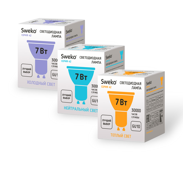 Цветовая температура | 3000 К Теплый свет | 4000 К Нейтральный свет | 6500 К Холодный свет |