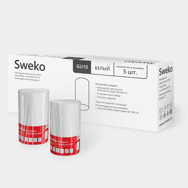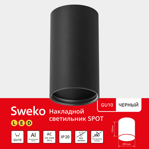 Светильники Sweko SPOT GU10 используются со светодиодными лампами PAR16 с цоколем GU10.