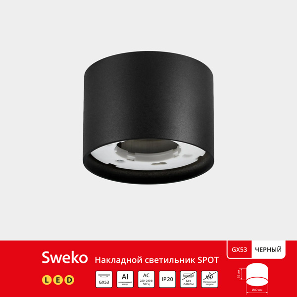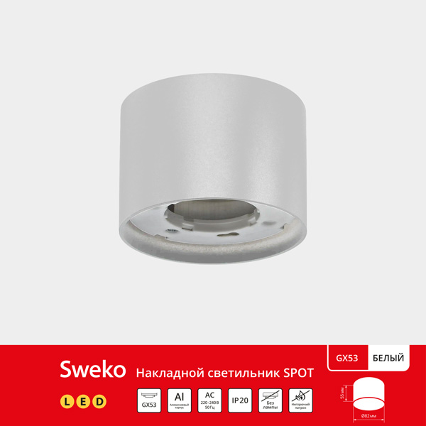 Светильники Sweko SPOT GX53 используются со светодиодными лампами с цоколем GX53.