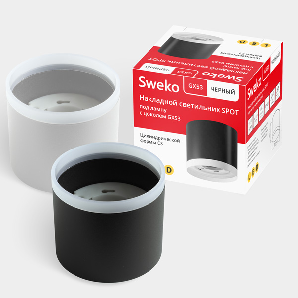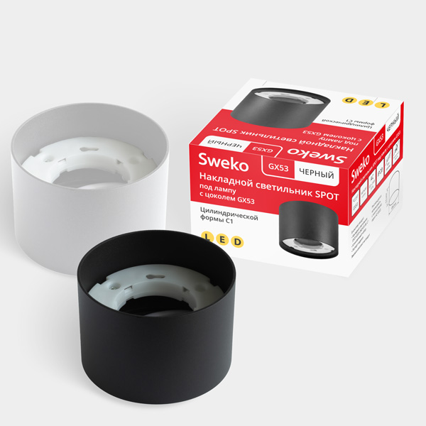 Накладные светильники серии SPOT GX53 модификаций С1, С2, С3 теперь упакованы в индивидуальную цветную коробку. Упаковка выполнена в фирменной стиле, имеет все необходимые данные о товаре для розничной торговли, выгодно выделяет светильник на полке и надежно защищает светильник от повреждений.